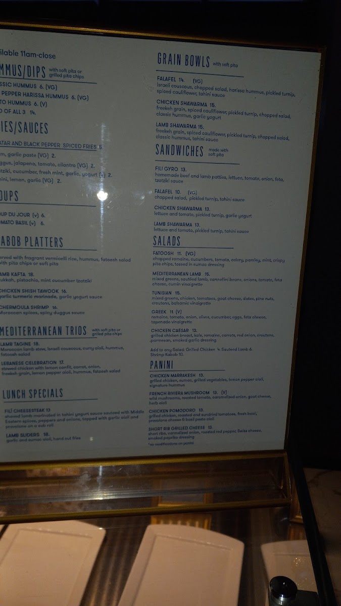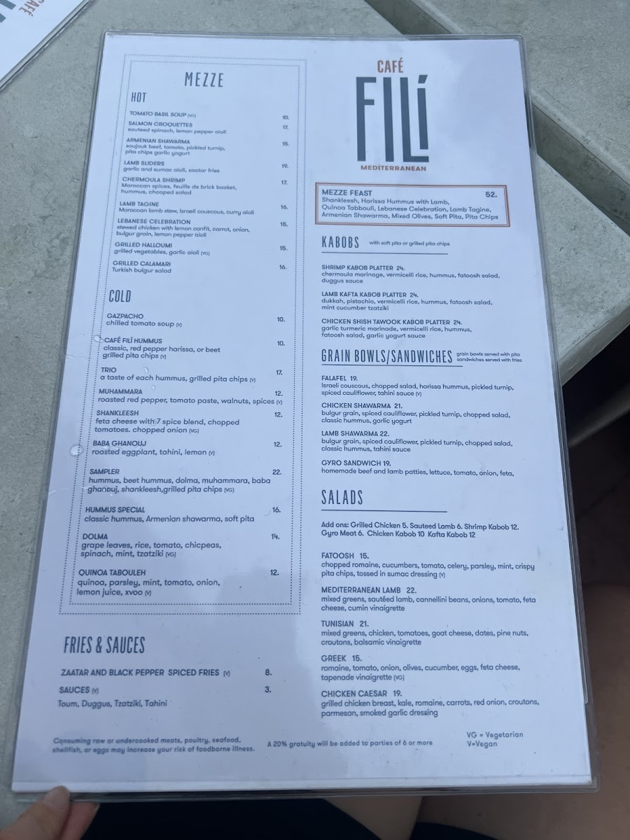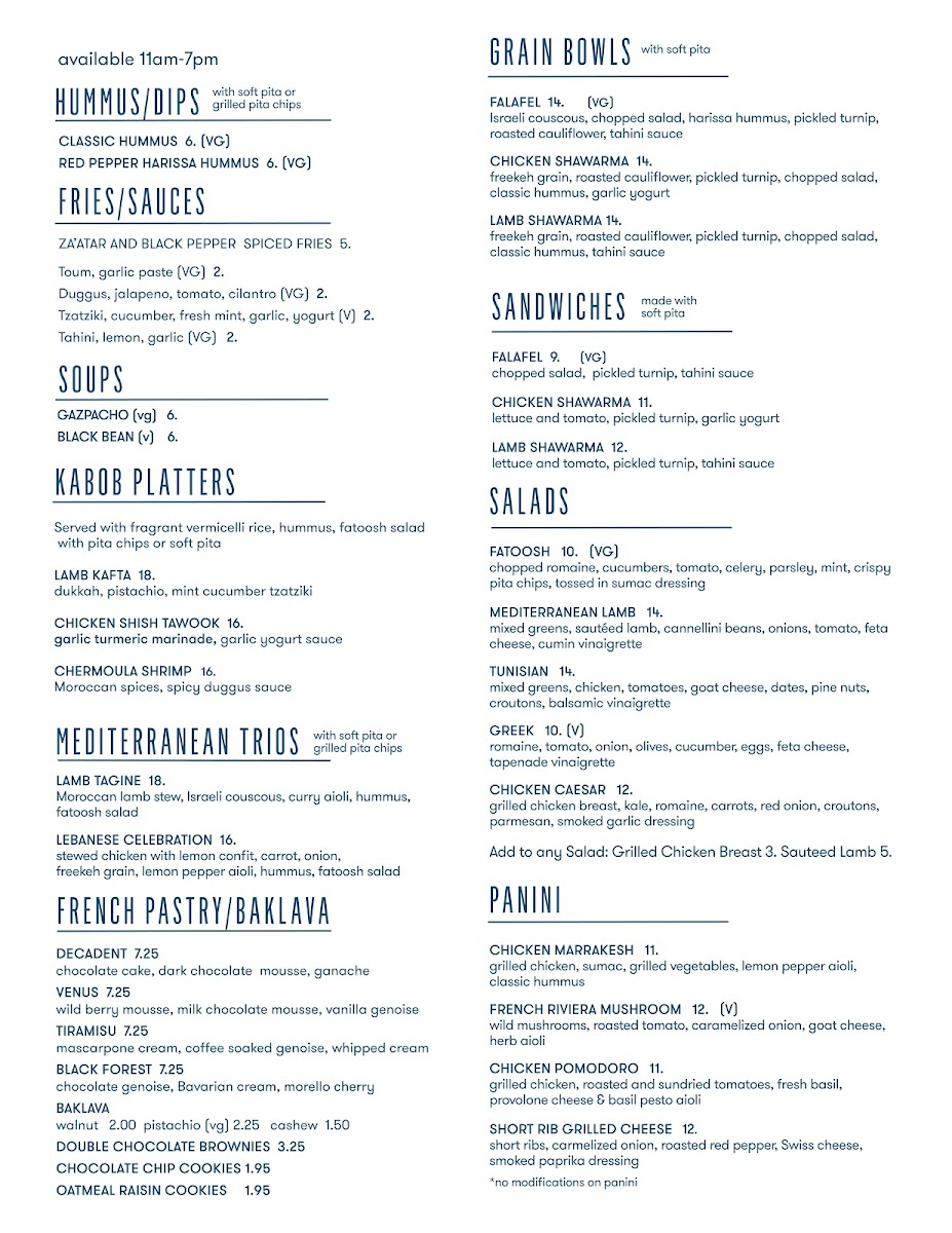 yellow basmati, chopped salad, signature hummus, za'ataar cauliflower. pickled vegies, Fili sauce, toum sauce, soft pita bread