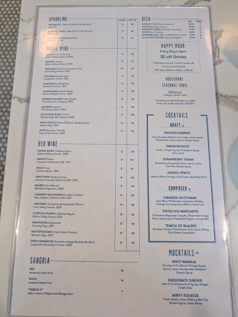 yellow basmati rice, fatoosh salad, pickeled veggies, classic hummus, spicy Aleppo sauce, soft pita